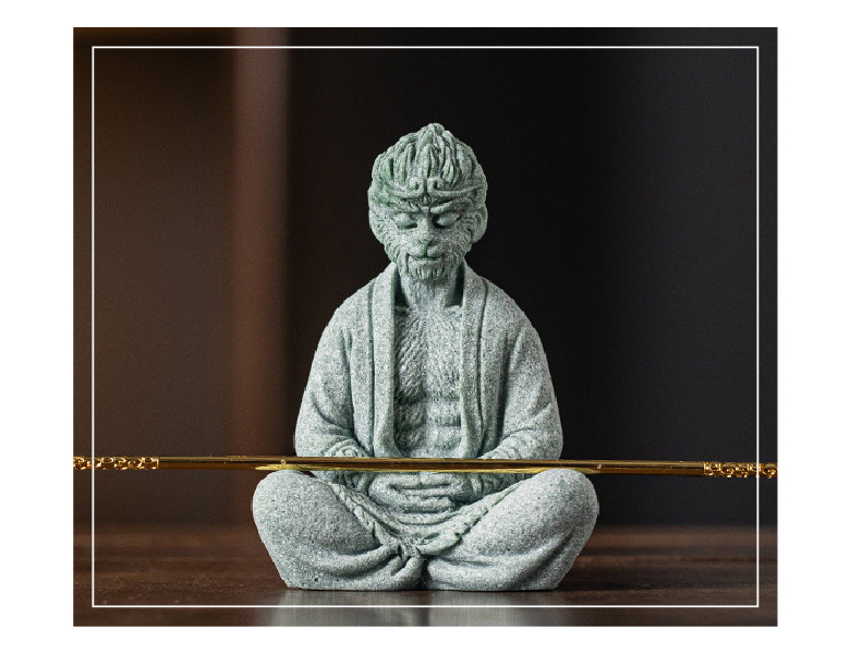 以靜心冥想的孫悟空為原型,象徵內心的平靜與靈性覺悟,適合靜修與靈性修行之處。